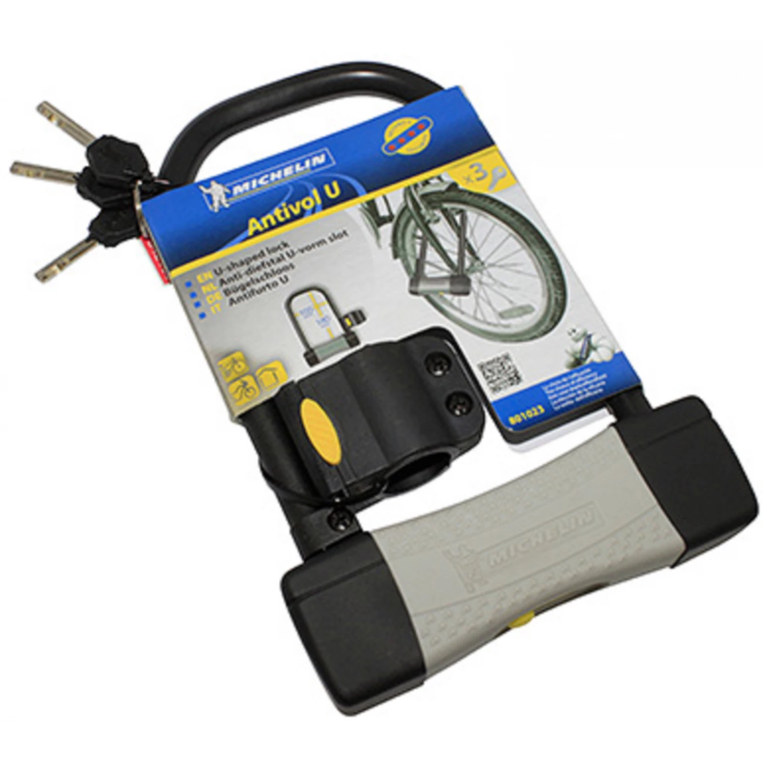 L’antivol U Michelin dispose d’un système de protège serrure anti poussière ainsi qu’un support de cadre déclipsable.