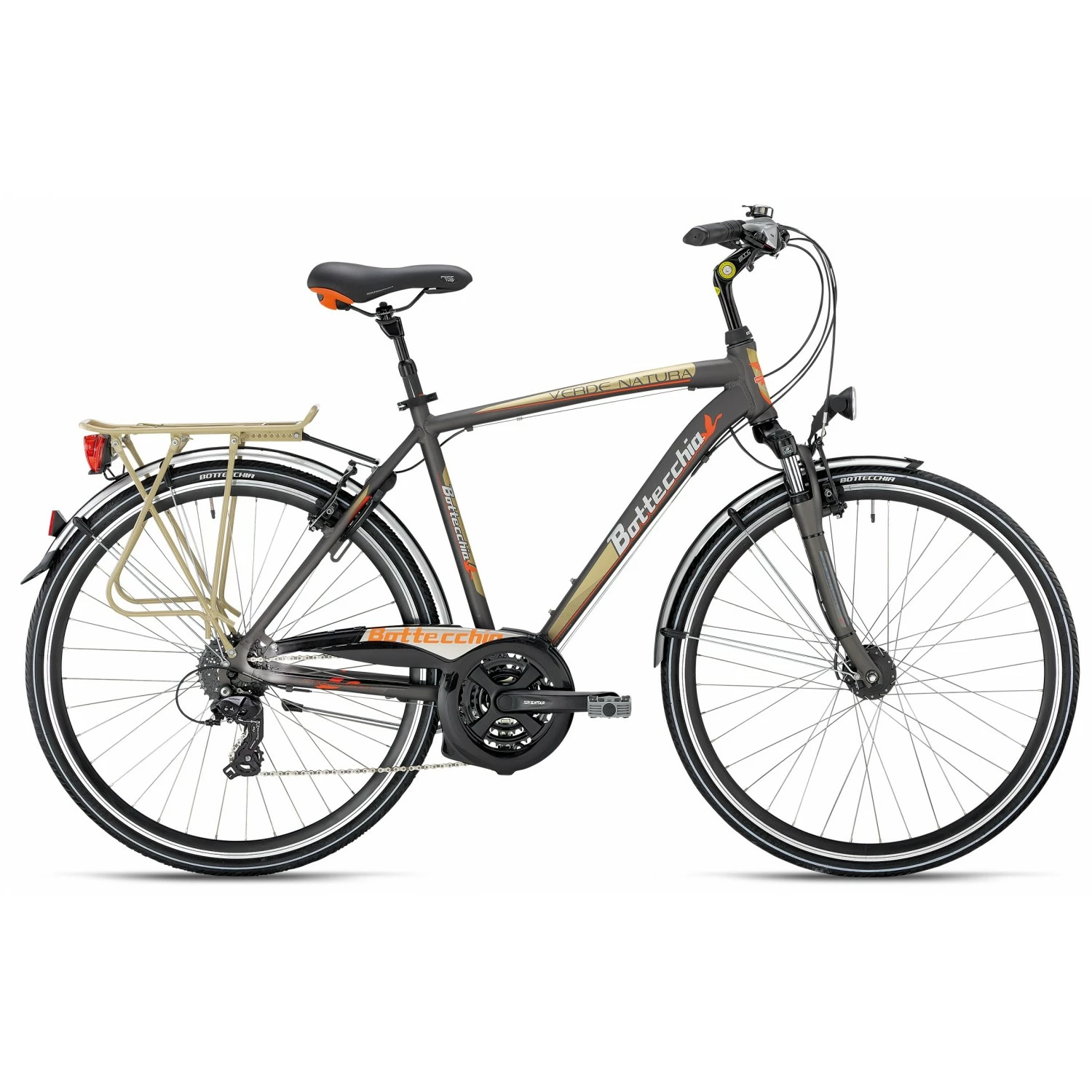 Le Bottecchia 230 est un vélo polyvalent à l’aise en centre ville comme sur les chemins de campagne, confortable grâce à sa suspension avant et sa suspension au niveau de la tige de selle, Le bottecchia 230 dispose de 21 vitesses shimano, l’éclairage est assuré par une dynamo moyeu.