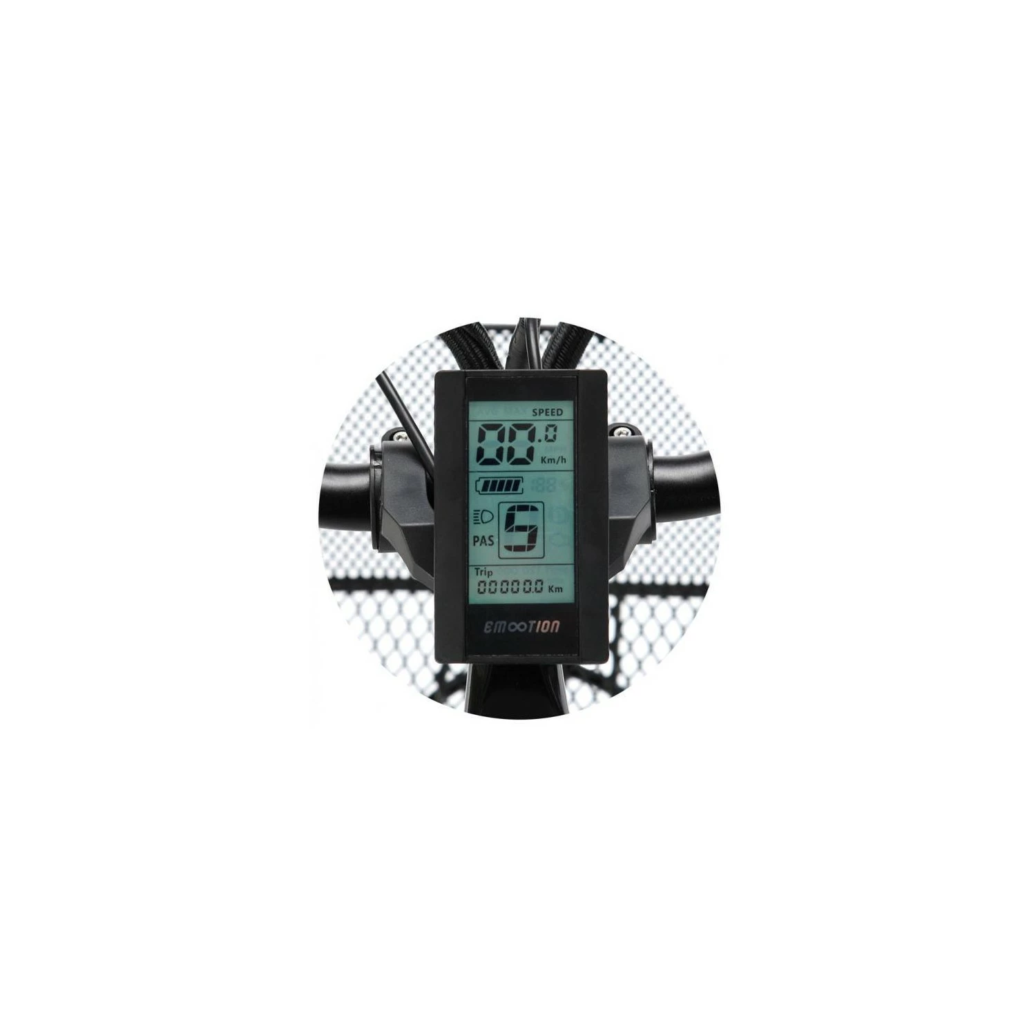 Le display LCD de ce vélo permet de sélectionner le niveau d’assistance, de visualiser la vitesse, la distance parcourue, la charge de batterie restante.