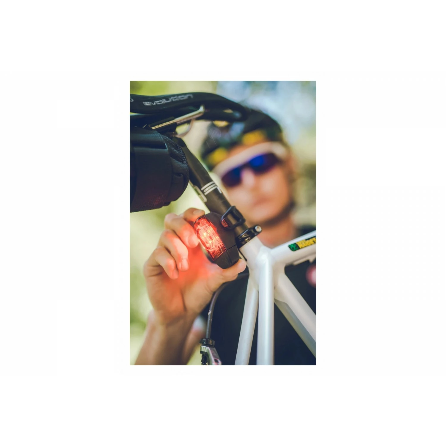 La KTV Drive est une lampe de signalisation compacte, compatible avec les tiges de selle aéro, avec deux LED lumineuses. Elle présente une construction co-moulée super légère mais durable, classée IPX7 (étanche). Elle offre jusqu’à 20 heures d’autonomie avec une optique hautement améliorée. Son objectif grand angle offre 270° de visibilité. L’arrière de la KTV Drive fournit 10 lumens et cinq modes d’éclairage. Elle dispose d’une clé USB intégrée pour une recharge pratique, sans câble.