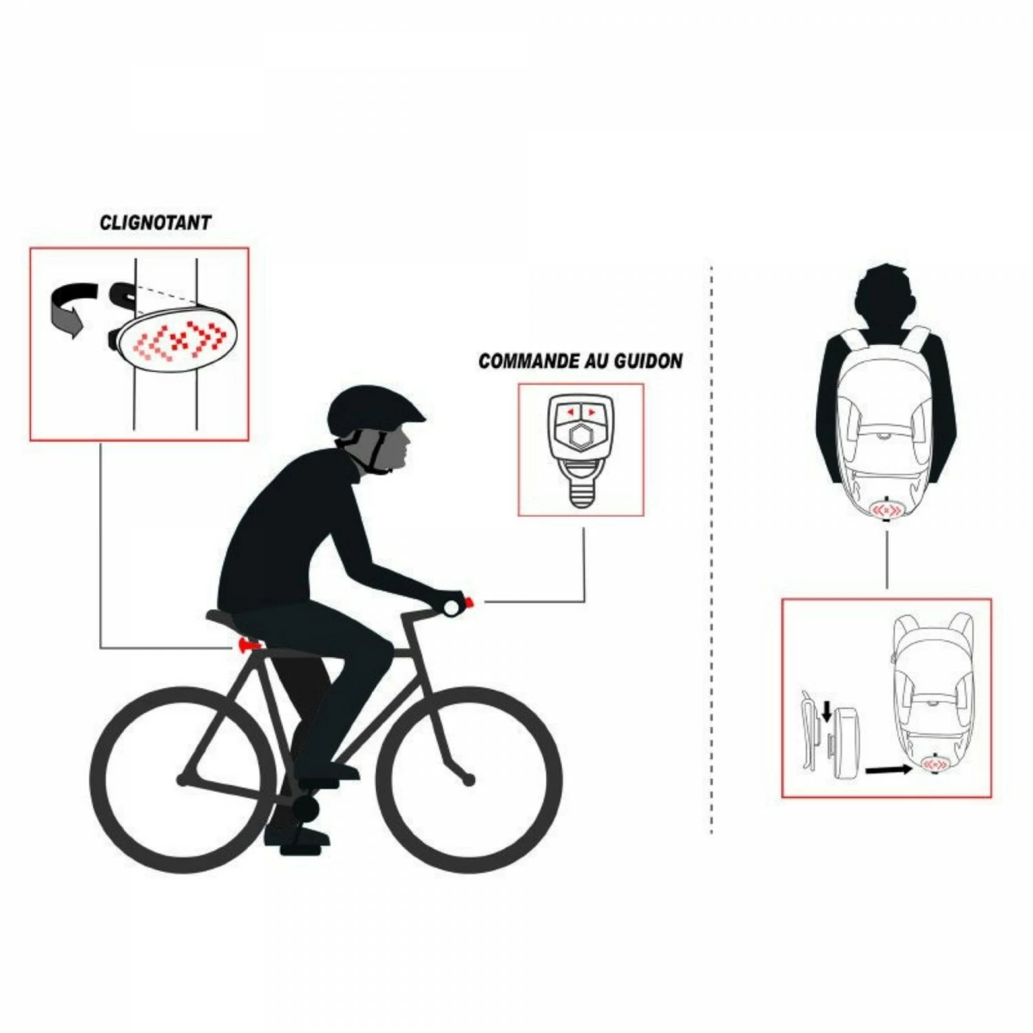 Cet éclairage à fixer sur la selle permet d’indiquer votre direction aux autres usagers.