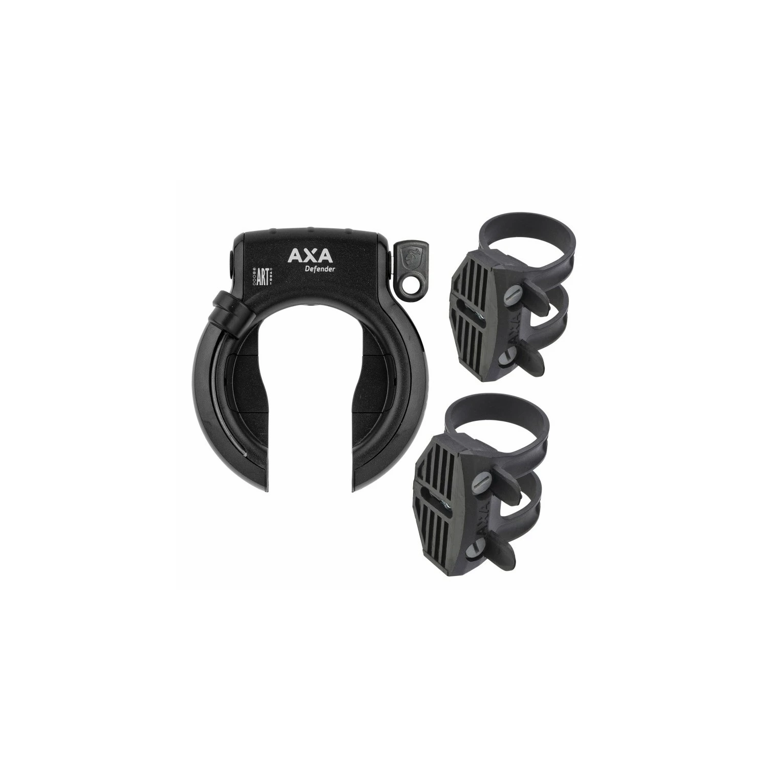 Antivol fer à cheval AXA defender fixation cadre, permettant le blocage de la roue arrière.