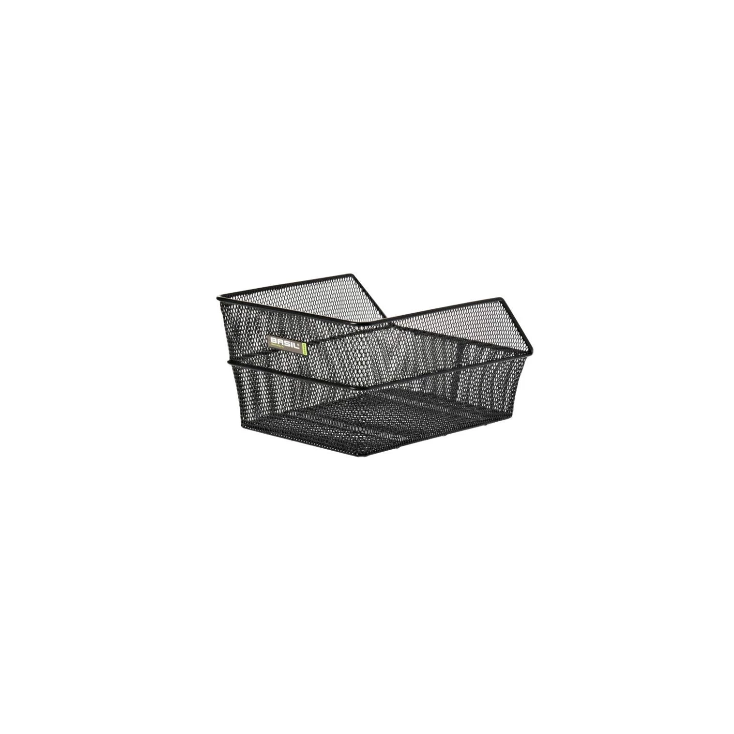Panier arrière en acier mailles fines à positionner en longueur, fixation système WSL. Compatible avec tout type de porte bagage, idéal pour E-bike.