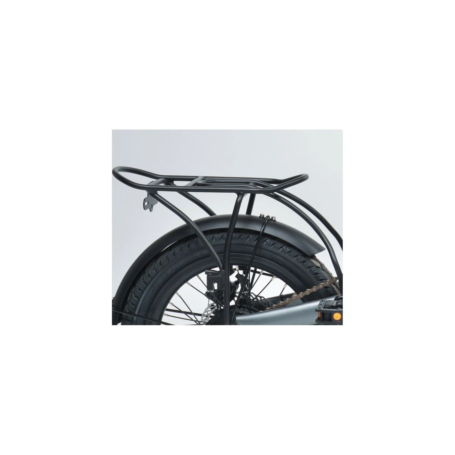 Porte-bagage fabriqué en aluminium. Il permet d’y fixer votre sac, bagage ou d’autre support comme un panier par exemple. Une fois fixé, il ne gène pas lors du pliage de votre vélo.