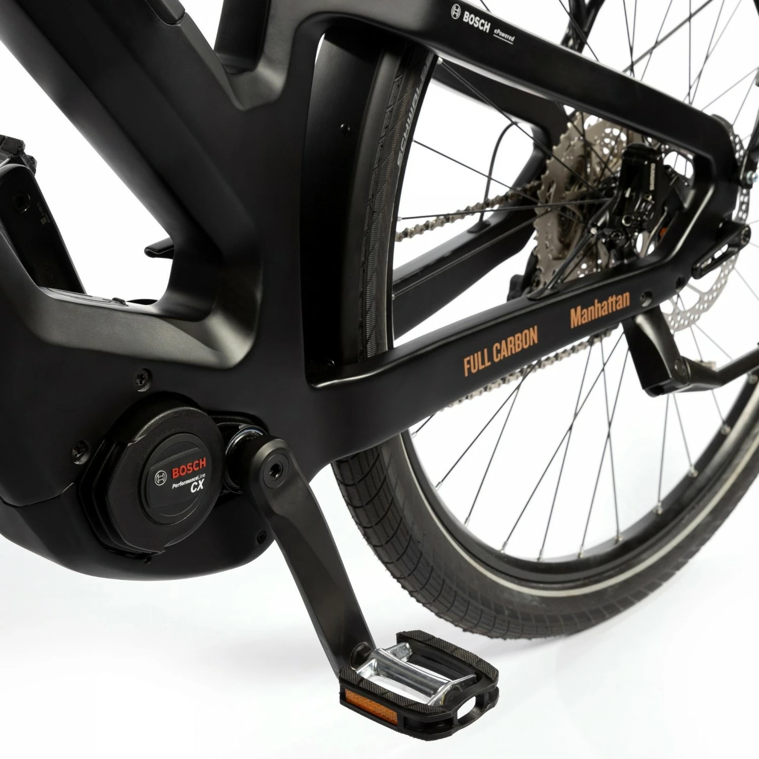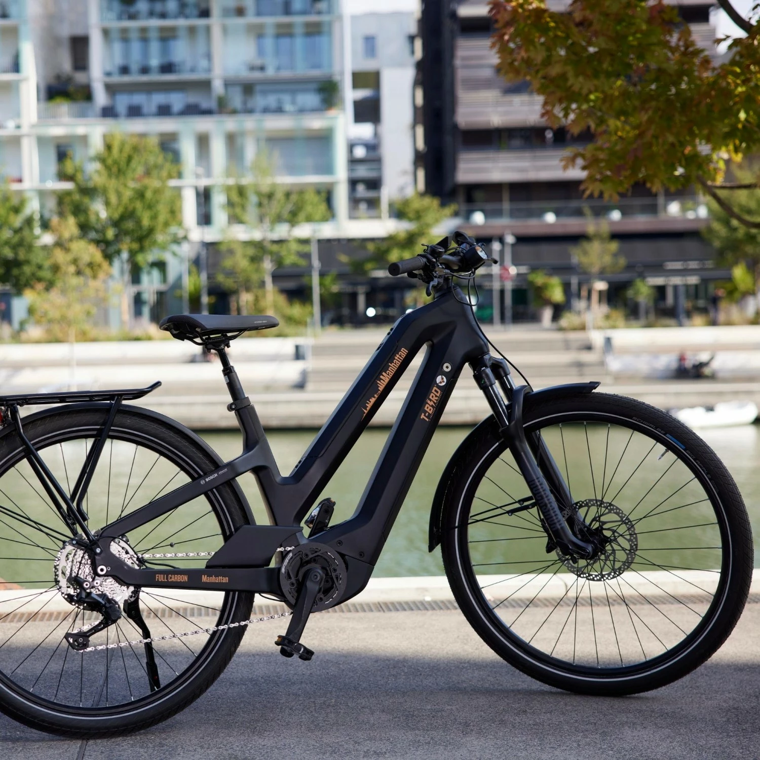 Le vélo électrique Manhattan de la marque T-Bird est un VTC haut de gamme équipé d’un cadre en carbone, véritable concentré de technologie.