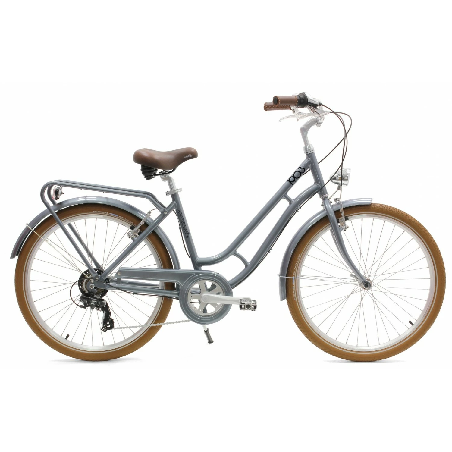 Idéal pour parcourir la ville le Arcade 1903 est aussi à l’aise sur les chemins, grâce à ses gros pneus et sa selle Royale c’est un vélo très confortable, il est équipé de 7 vitesses shimano, son cadre en aluminium est léger et ne craint pas la corrosion et ses roues de 26 pouces le rendent particulièrement maniable.